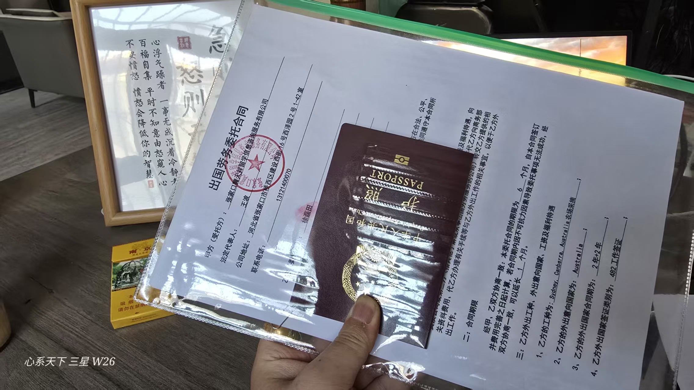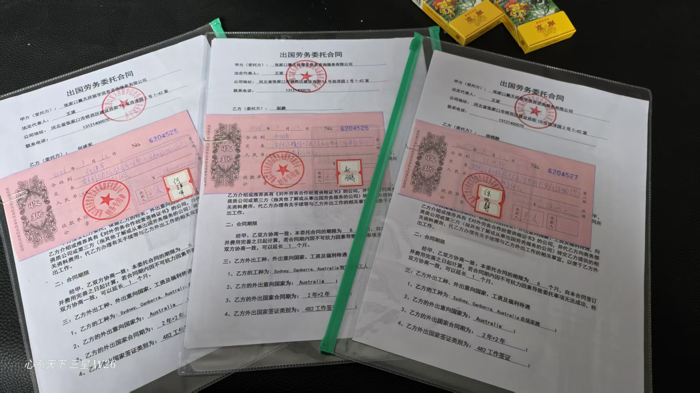 客户何建军(澳大利亚司机),赵鹏(澳大利亚牧场喂养工人),徐晓静(澳大利亚农场采摘)合同及收据已准备好,下午顺 […]